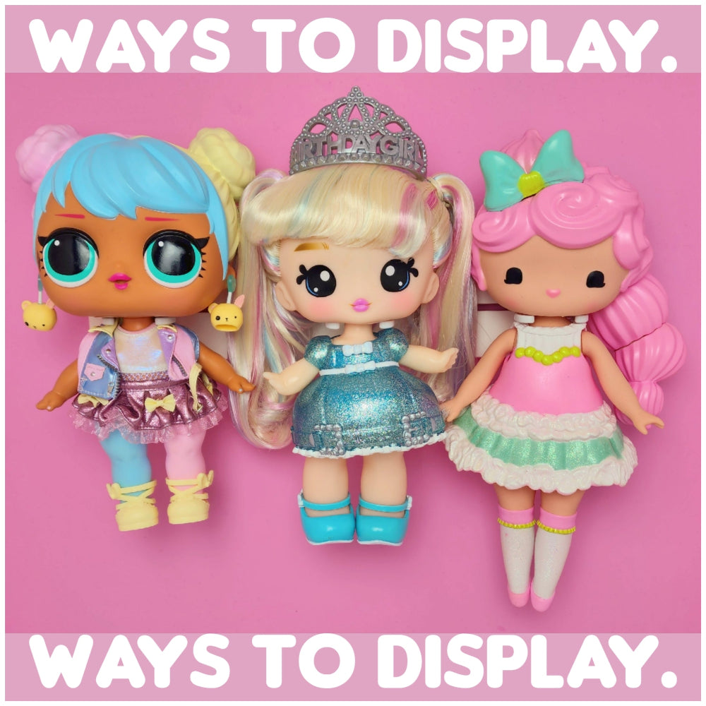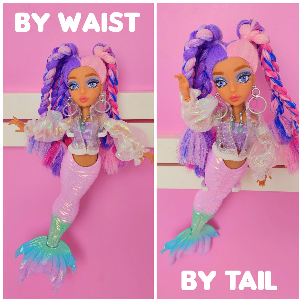 Our doll hook design allows you to display your collectibles by the neck, waist, or mermaid tail, without restricting posability.